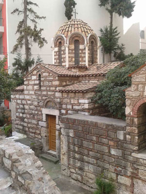 Στον σημείο αυτό το οποίο βρισκόταν έξω από τα τείχη της πόλης, σε κατάφυτη περιοχή, που ονομαζόταν "Κήποι", βρισκόταν πηγή δροσερού νερού και Ιερό, αφιερωμένο στην Ουράνια Αφροδίτη, δηλ. στη θεά του αγνού έρωτα και της οικογένειας. Το άγαλμα της θεάς, ήταν έργο του Αλκαμένη, μαθητή του Φειδία. Λέγεται δε ότι με την εποπτεία του ίδιου του Φειδία καλλιτεχνήθηκε. Από το ναό αυτό σώζεται η πηγή σημέρα γνωστή ως Αγίασμα, που βρίσκεται στη Δυτική όψη του Ναού, σε κρύπτη δεξιά της εισόδου (με τόσες πολυκατοικίες γύρω είναι προφανές ότι δεν μπορούμε πλέον να πιούμε νερό) και ο βωμός της θεάς στον οποίο αφιερώναν κατά τη γιορτή των Αρρηφορίων.