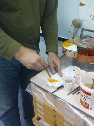 Ο αγιογράφος ετοιμάζει τα χρώματα.