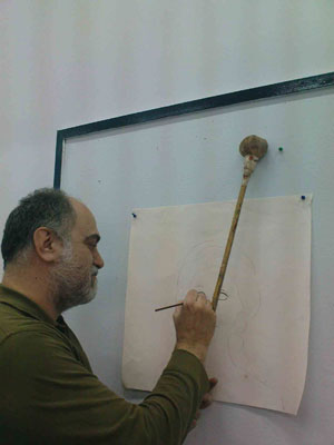 Το μπαστούνι το χρησιμοποιεί για να σταθεροποιεί το χέρι του.